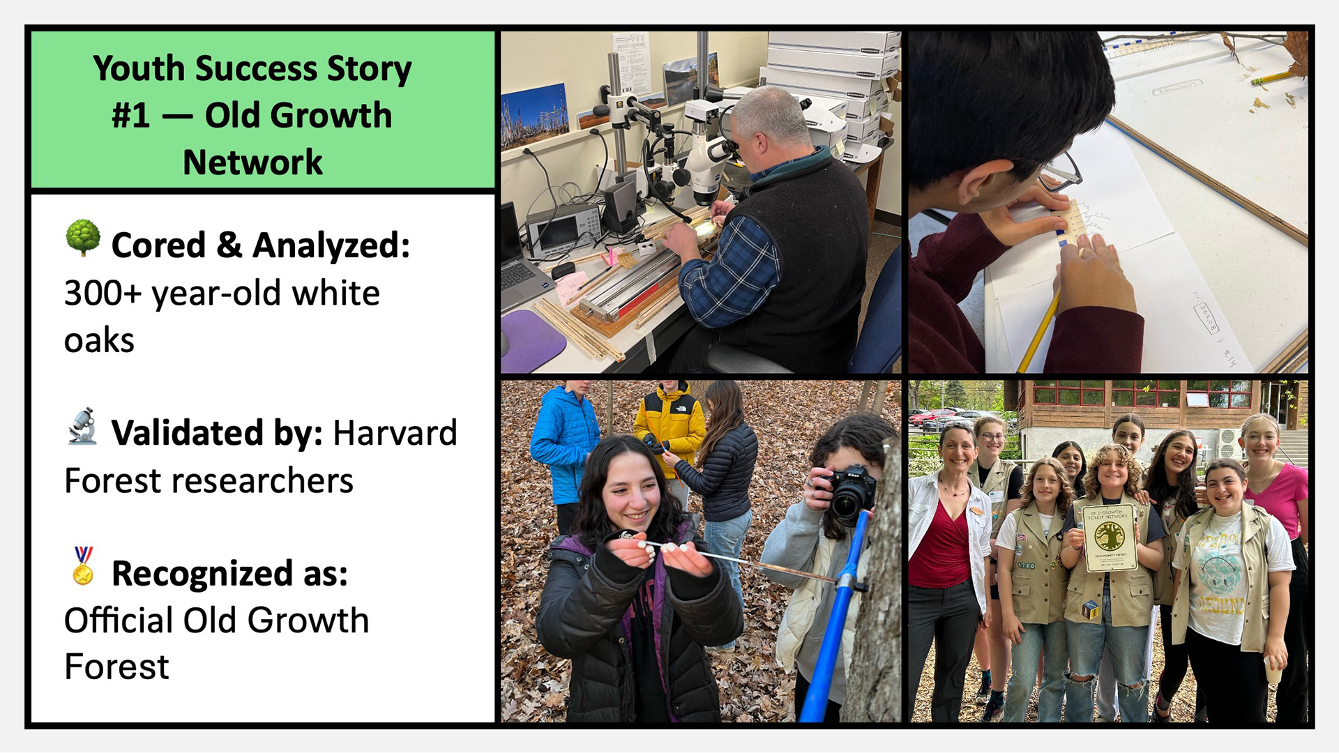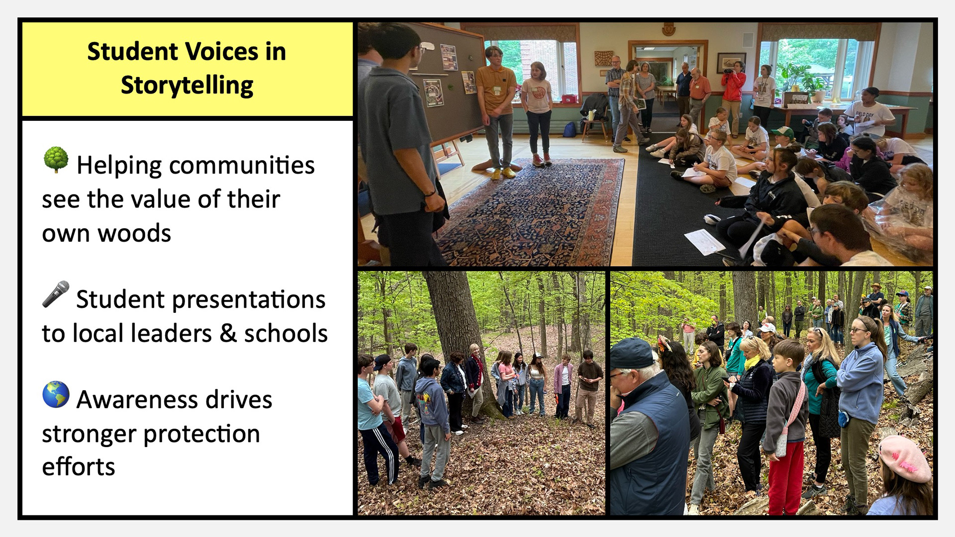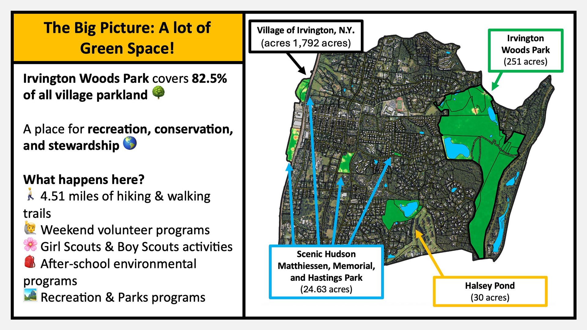 These environmental science and ecology field programs engage community members of all ages in hands-on learning and civic stewardship within Irvington Woods Park. From kindergarten through adult education, participants build skills in field biology, GIS and remote sensing, conservation science, soil ecology, maple sugaring, and community-based restoration. Structured pathways include Budding Ecologist (Grades 2β3), Junior Ecologist (Grades 4β5), Changing Forest (Grades 6β12), a Summer Internship (Grades 8β12), and Independent Science Research mentorship (Grades 10β12). Together, these programs cultivate a knowledgeable volunteer base that understands the forestβs needs and takes meaningful action to protect and restore this unique ecosystem, helping secure more than $500,000 in restoration grants and contributing to national recognition of Irvington Woods as an Old Growth Forest.